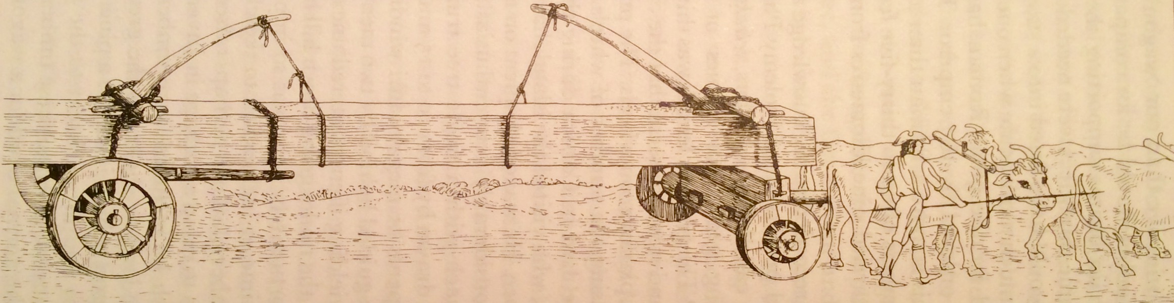 “See the Mill, get a Cut, visit Mrs. Rainer and her Daughter Broughton. Breakfast there. Ride into Swamp to see a Mast drawn of about 26 inches of 28 [diameter]; about two and thirty yoke of oxen before, and about four yoke by the side of the Mast, between the fore and hinder wheels. ‘Twas a very notable sight. Rode then to York…”