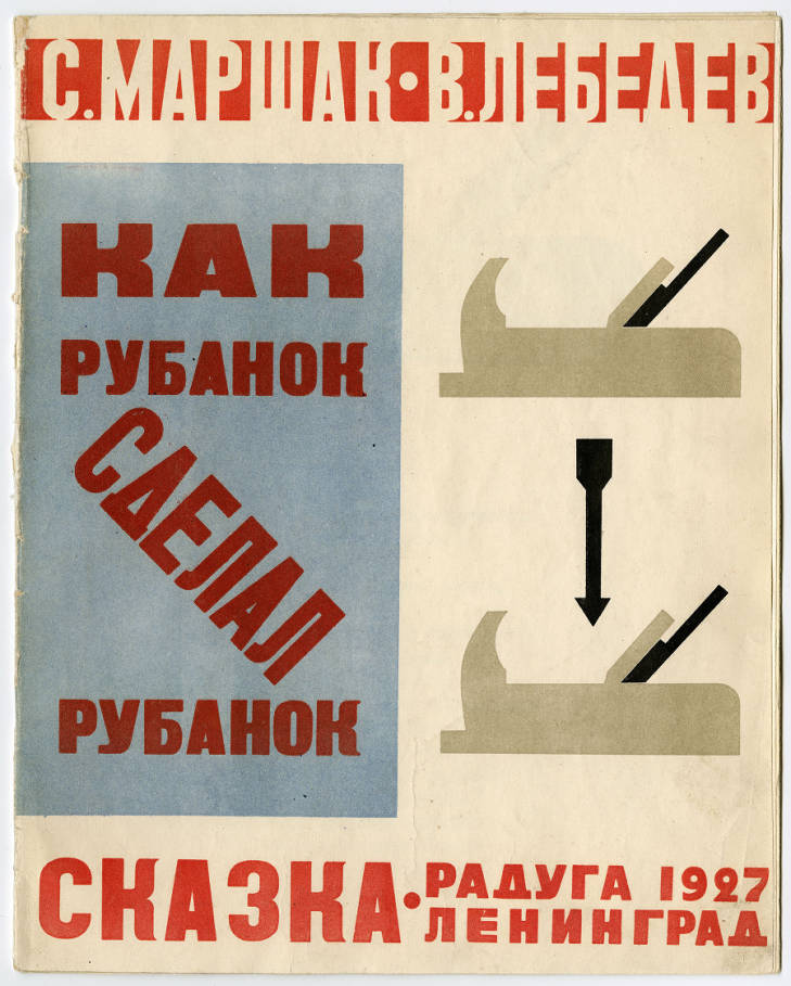 The title of this 1927 book translates as “How a Plane Made a Plane: A Fairytale.” The author is writer and poet, Samuil Marshak, considered to be the founder of Russian children’s literature. He was championed by Maxim Gorky. Marshak and the illustrator, Vladimir Lebedev, worked on several books together.